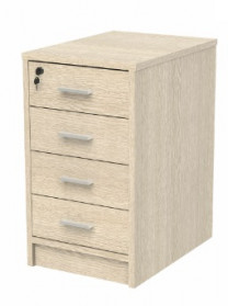 С правой стороны подвесная тумба, три выдвижных ящика, направляющие роликовые