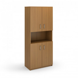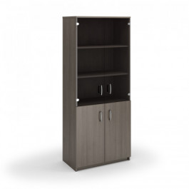 Две полки шкафа закрыты глухими дверцами, одна ниша - открытая.