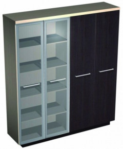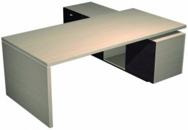 Цвет: Дуб темный, Дуб светлый Толщина: столешницы – 41 мм; каркасы столов – 41 мм, шкафов и тумб – 16 мм, полки - 25 мм., топы — 41 мм. Фурнитура: металлическая ручка-скоба, цвет — хром. Декоративная проставка между столешницей и боковой опорой в столах и сервисной тумбе выполнена из листовой стали толщиной 5 мм в цвете «хром глянцевый». Направляющие выдвижных ящиков – металлические с нейлоновыми роликами. Металлические петли оснащены системой плавного закрывания (доводки) Опоры столов и шкафов — регулируемые. |