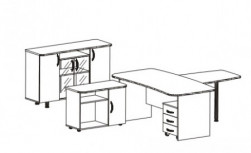 Материалы: ЛДСП 22 мм и 16 мм; кант ПВХ 2 мм и 0,4 мм; стекло 5 мм, окрашенное в массе. Особенности кабинета: -стекло тонированное; -замки в шкафах и тумбах; -регулируемые по высоте опоры шкафов и столов; -межсекционные стяжки для соединения модулей между собой; -демпферы для мягкого закрывания дверейГарантия 8 лет.