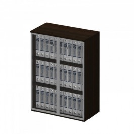 Шкаф для документов 781 серии Талант закрыт двумя низкими и двумя средними дверьми, внутри - 5 полок.