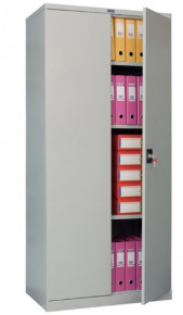 В стандартную комплектацию металлического архивного шкафа ШАМ 11 входят три регулируемые по высоте полки, дверь шкафа оборудована замком повышенной секретности и ригельной системой запирания.