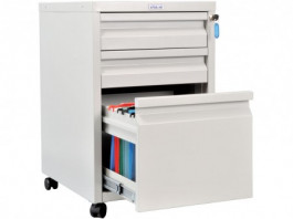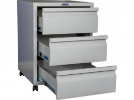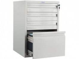 - Оптимизация пространства. Для установки непосредственно под стол сотрудника выбирайте картотечные тумбы (2–3 ящика). Для организации централизованного архива используйте вертикальные шкафы (4–5 ящиков), которые используют высоту помещения по максимуму.